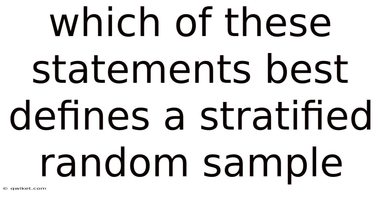 In conclusion, the statement that best defines a stratified random sample is: A sampling method that divides a population into subgroups based on shared characteristics, then randomly selects samples from each subgroup to ensure representation and increase the accuracy of the results. This method is invaluable in research settings where representation and precision are paramount, making it a preferred choice for many statisticians and researchers.