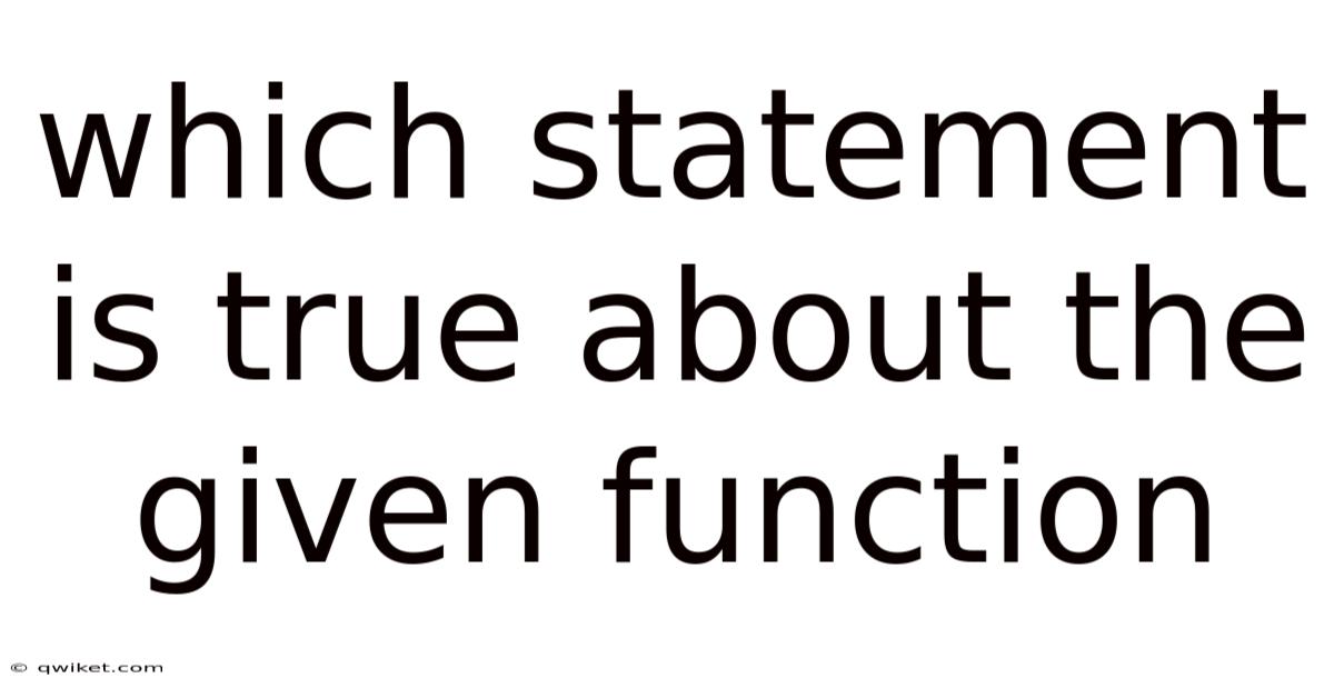 When faced with a problem that asks “which statement is true about the given function?Whether the function is presented algebraically, graphically, or through a table of values, the same logical steps can be used to evaluate each statement’s validity. This article walks you through a comprehensive framework for tackling such questions, explains the most common types of statements you may encounter, and provides concrete examples that illustrate each concept. ”, the challenge is not simply to pick an answer at random, but to apply a systematic analysis that reveals the underlying properties of the function. By mastering these techniques, you will be able to approach any “true‑statement” problem with confidence and precision.