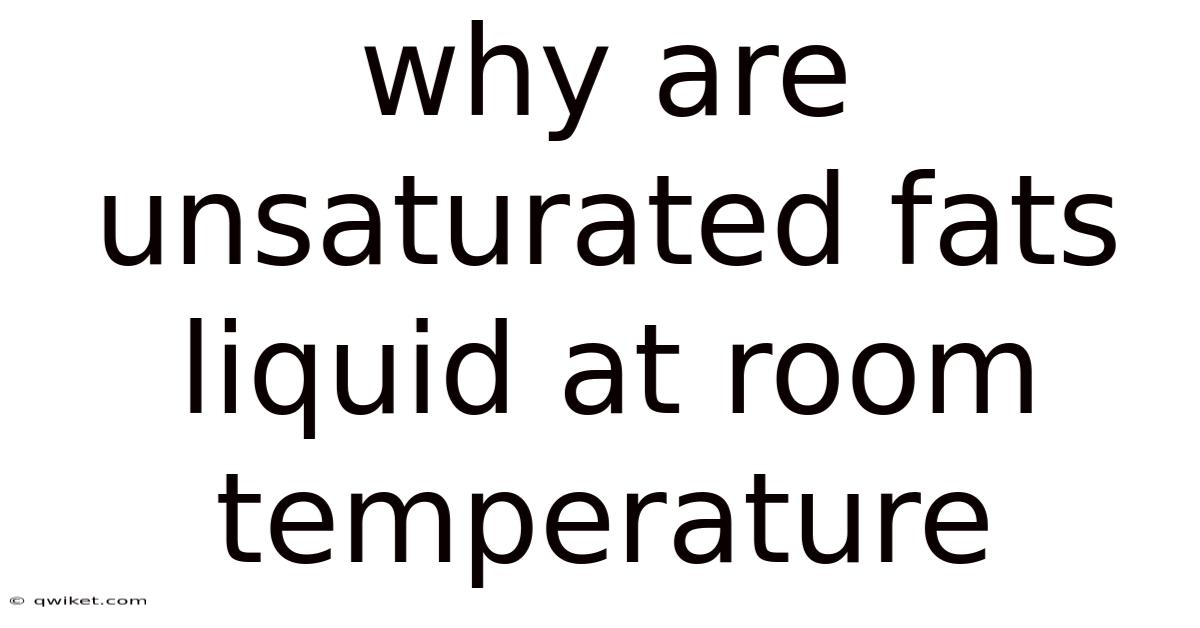 Understanding why unsaturated fats liquid at room temperature has important health implications. The same molecular properties that keep these fats liquid also make them beneficial for heart health: